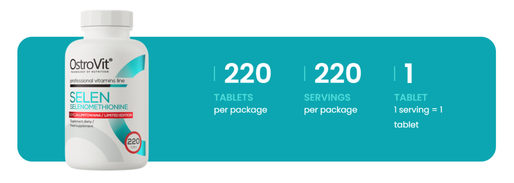 Az OstroVit Selenium egy étrend-kiegészítő, amely szelént biztosít a szervezet számára magas biológiai hasznosulású L-szeleno-metionin formájában. A készítmény könnyen lenyelhető tabletta formában érhető el, és azok számára készült, akik napi étrendjüket szeretnék kiegészíteni ezzel az értékes nyomelemmel.