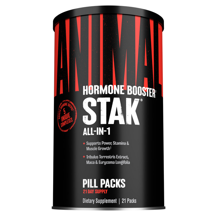 Bár az Animal Stakot és az Animal M-Stakot is természetes anabolikusnak terveztük, mindegyik másképp működik. Az Animal Stak egy természetes hormonfokozó, amely a szervezettel együttműködve fokozza a kulcsfontosságú anabolikus hormonszinteket, beleértve a tesztoszteront és a növekedési hormont. Az Animal M-Stak ezzel szemben elősegíti az anabolizmustAz Animal M-Stak prototípusát először elit testépítőkön és erőatlétákon tesztelték. Az eredmények váratlanok és egészen meglepőek voltak. A súlyemelők nehezebb súlyok megmozdítására voltak képesek. A testépítők úgy találták, hogy könnyebben tudnak minőségi izomkötegekre szert tenni.Az Animal Stak elsődleges anabolikus hatásai abból a képességéből erednek, hogy az anabolikus hormonok felépítését közvetlenül tudja befolyásolni azáltal, hogy átalakul azokba. Ezek az anabolikus hormonok azután hozzák az áhított eredményeket. Ettől eltérően az Animal Stak olyan biokémiai mechanizmusokra van kihatással, melyek gyorsítják az anabolizmust, amely: fokozza a nitrogén visszatartás, táplálék szétválasztást, javítja az inzulin funkciót, megnöveli protein felépítést és csökkenti protein katabolizmust.Az Animal Stak „Pro Testosterone Complex” összetétele tele van Tribulus Terrestris kivonattal, Eurycoma Longifolia, Maca gyökérkivonat és még sok más tesztoszteron fokozóval. Úgy tervezték, hogy segítsen megőrizni és egekbe emelni a természetes tesztoszteronszintet. Mire alkalmas a megerősített tesztoszterin szint? Egy csomó dologra – segíthet növelni az izomtömeget és az erőt; energizálhat, növelheti a vitalitás érzését és javíthatja az izmok kialakítását, így „erőteljes” megjelenést kölcsönzhet.Ha aggódjon amiatt, hogy a megnövekedett tesztoszteron befolyásolja az ösztrogénszintre. A termékhez egy Aromatase Combating Complexet adtak, amely olyan kulcsfontosságú összetevőket tartalmaz, mint a Resveratrol, a DIM és a Calcium D-Glucarate melyek segíthet az egészséges ösztrogénszint fenntartásában.Az Animal Stak „Hormon Amplifying Blend” lényegében „olaj a tűzre”. A karnitin, az agmatin-szulfát és az asztaxantin, valamint egyéb összetevők mellett ez a keverék segíthet fokozni a tesztoszteron és a GH-emelkedést. Ennek a terméknek az intenzitása nagyrészt ennek az egyedülálló és fontos komplexnek köszönhető.Az Animal Stak terméket még egy fontos "Restorative Support" regeneráló komplexet keveréket is tartalmaz, mint a máriatövis kivonat, az astragalus, ashwagandha kivonat, az alfa-liponsav és a Q10. Ezek a kulcsfontosságú tápanyagok segítenek a belső szervek támogatásában, amit a keményen edző sportolóknak nem szabad figyelmen kívül hagyniuk.Kiszerelés: 21 csomag
